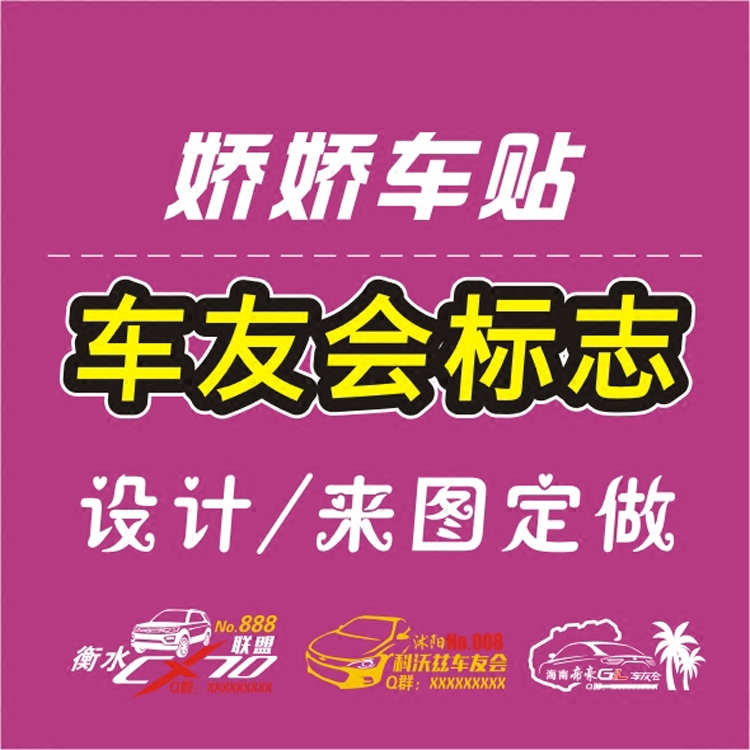 推荐新款满20张反光包邮 车友会车标定制车贴标志会徽娇娇车身贴