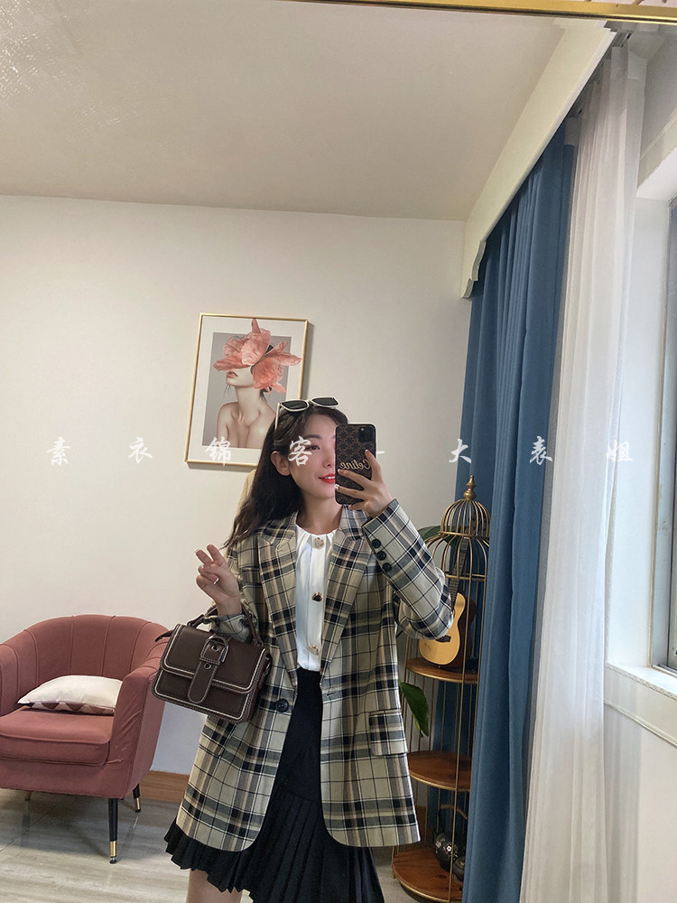 2021新款小个子英伦风休闲格子西装外套女春秋季设计感小众热门设计联盟服务商