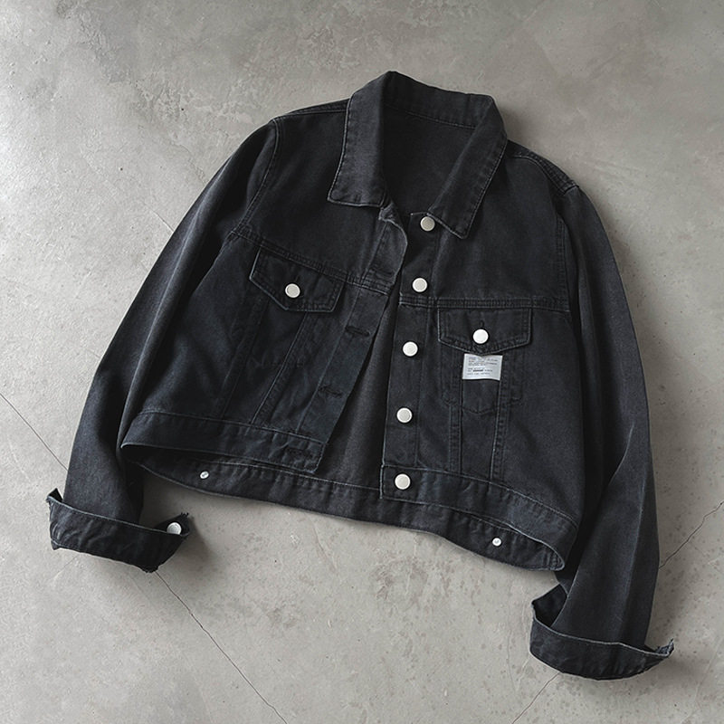 咪吖2021春秋反光设计感宽松短款黑色牛仔外套女上衣ins潮短外套热门设计联盟服务商