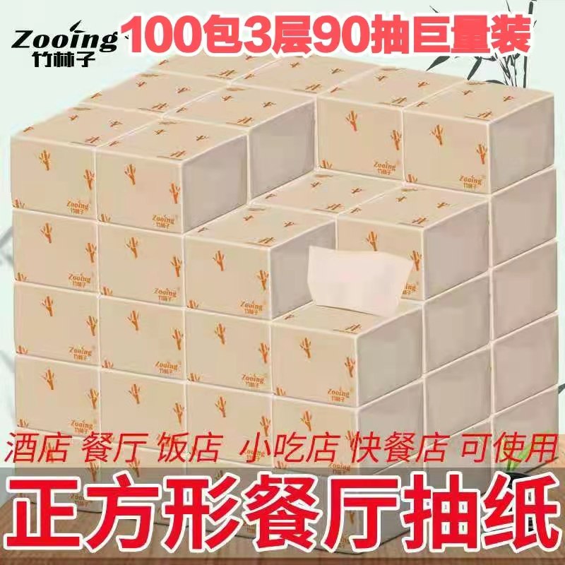 竹林子正方形小抽纸100包90抽竹浆餐巾纸 商务餐饮饭店用纸巾整箱热门设计联盟服务商