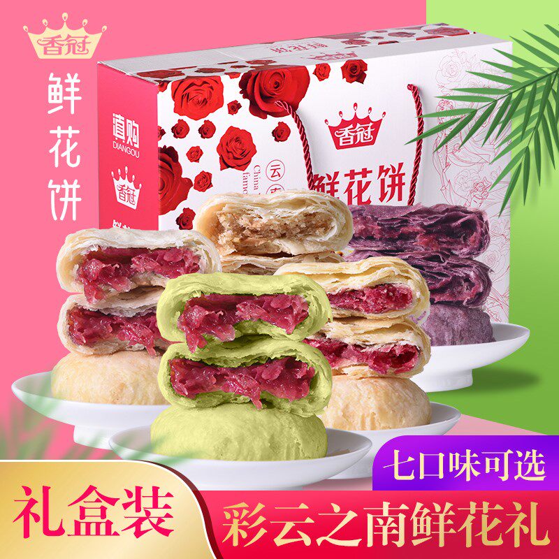 香冠鲜花饼云南特产正宗玫瑰花饼900g30枚礼盒昆明糕点心团购送礼热门设计联盟服务商